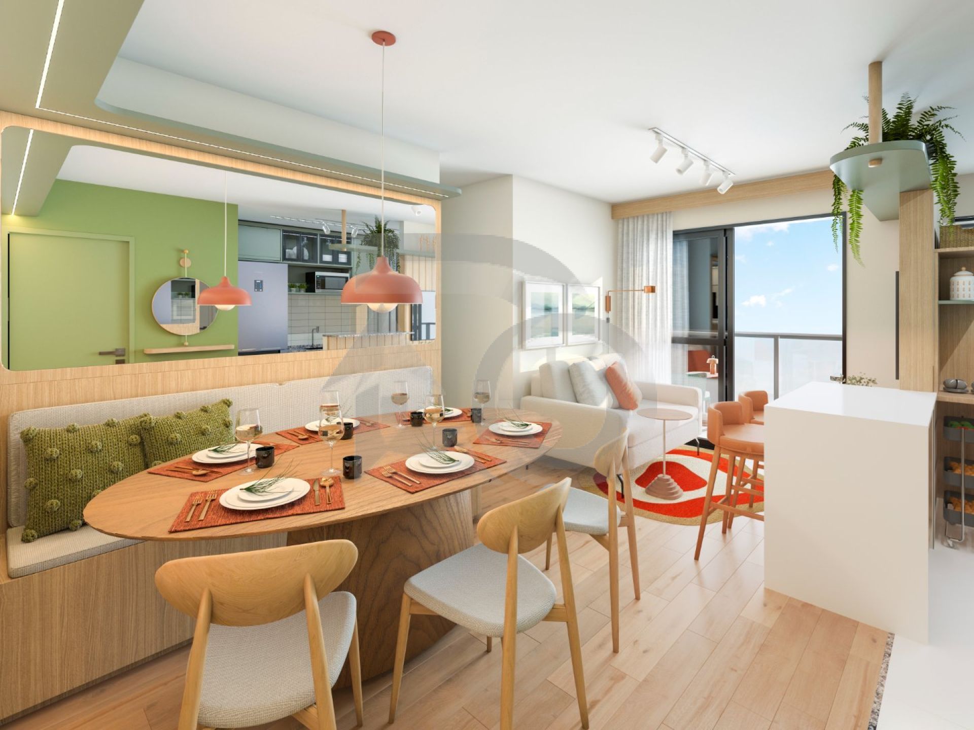 * Sala integrada com cozinha e varanda;