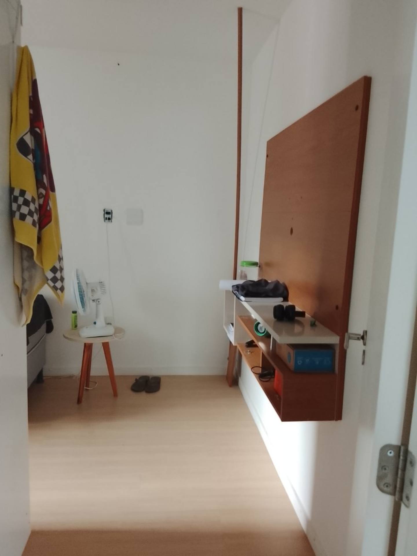 Piso laminado na sala e nos quartos.